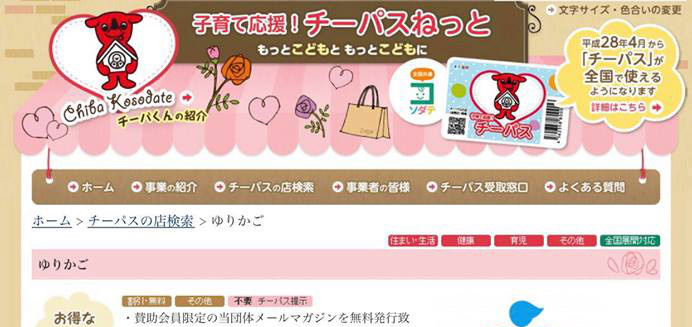 本日より、千葉県が運営するチーパスの協賛団体として、当法人のオンラインピアサポートシステム『ゆりかご』が掲載されています。 チーパスをお持ちのご家族向けにサービス特典を展開していますので、ご覧ください。