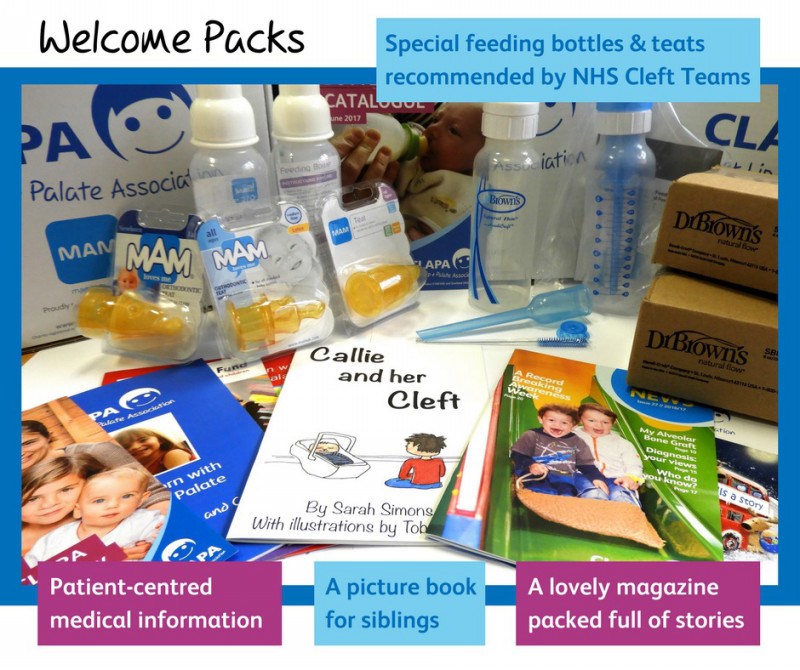 CLAPAでは出産後、家族からのリクエストがあったときに、ウェルカムパックという、口唇口蓋裂の子のための哺乳瓶と乳首2セットずつと、CLAPAで発行しているニュースレターやリーフレットなどの冊子を無料で送っているそうです。哺乳瓶や乳首については、その子の状態に合わせたものが必要なので、赤ちゃんが生まれた後で、専門看護師に赤ちゃんの状態をみてもらってから、適切なものを選んでからリクエストしてもらうそうです。